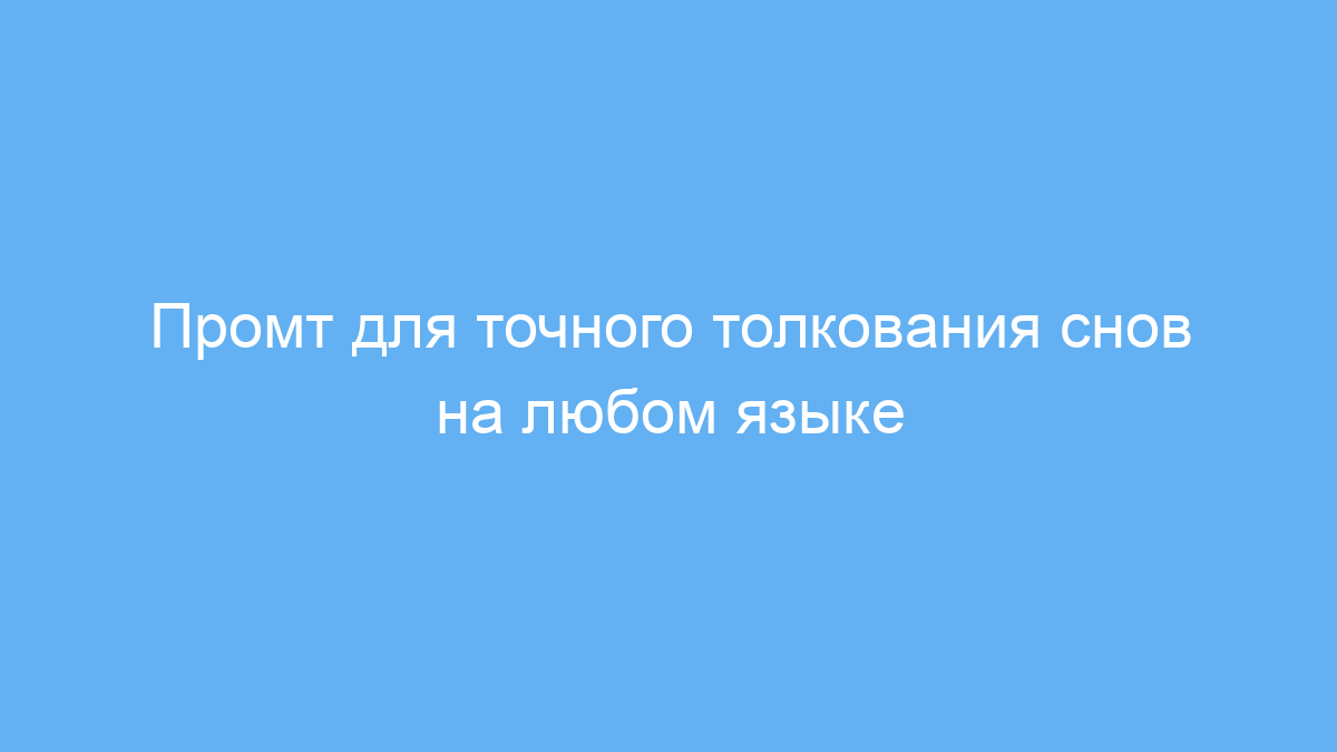 Этот промт предназначен для тех, кто хочет получить подробное и грамотное толкование своих сновидений с учётом личного контекста и универсальных символов. Он будет полезен психологам, копирайтерам, блогерам, людям, интересующимся сновидениями, а также всем, кто хочет использовать знания из снов для самопознания и развития.