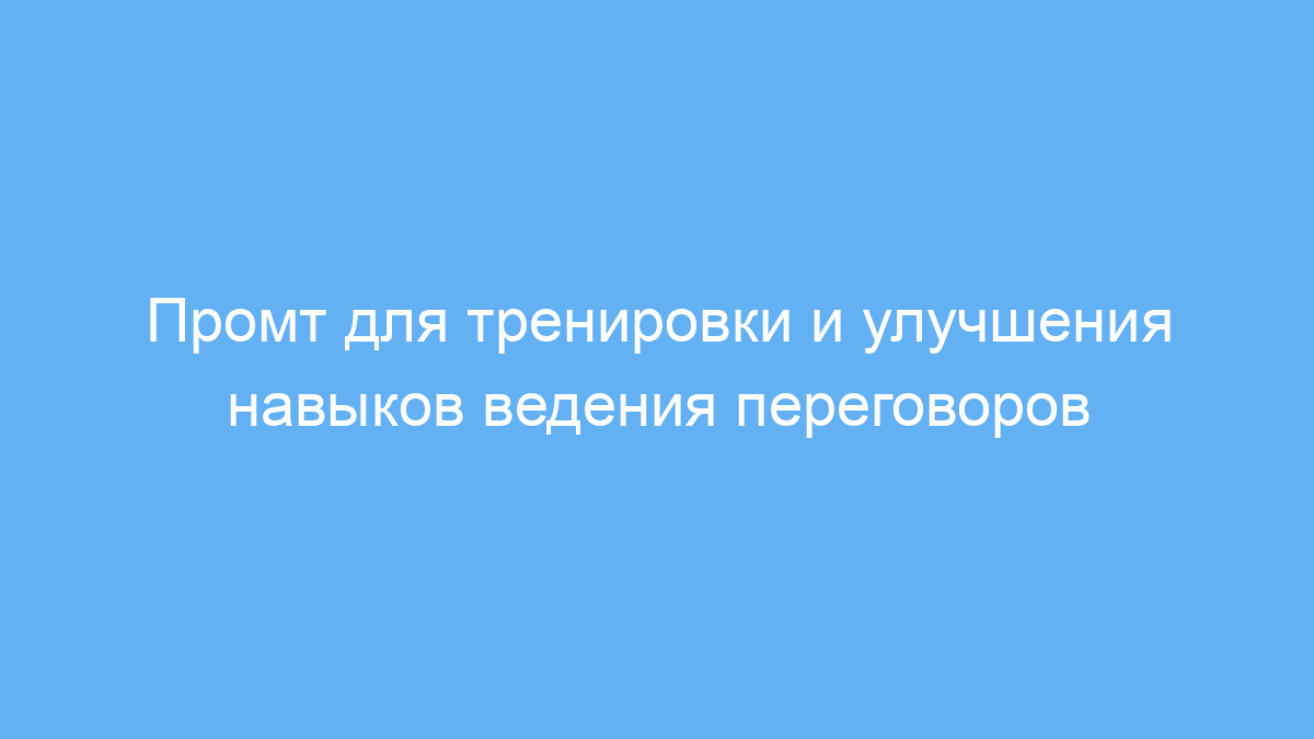 - Используйте промт для практики переговоров в разных сценариях: продажа, получение повышения, решение конфликтов и т.д.