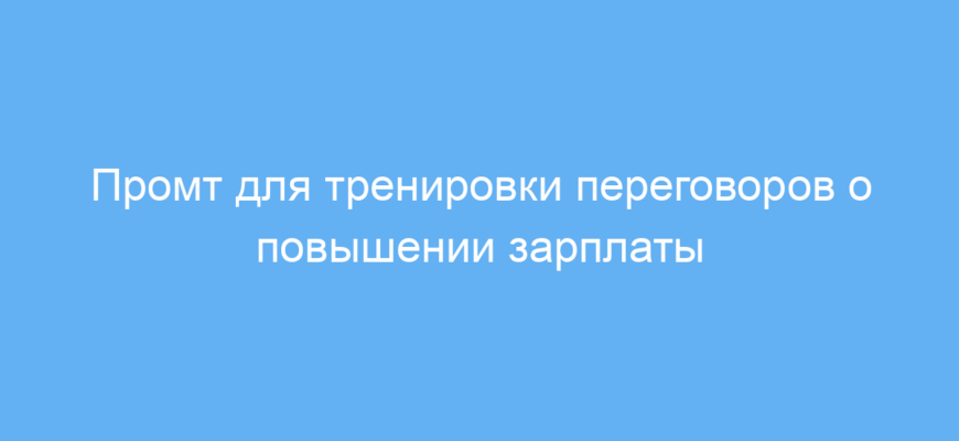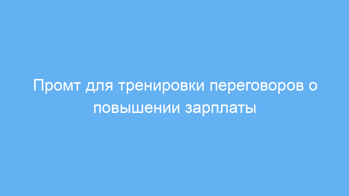 Данный промт помогает сотрудникам подготовиться к сложным переговорам о повышении зарплаты. Он тренирует умение аргументировать, отвечать на возражения и вести профессиональный диалог. Благодаря регулярной практике с промтом можно повысить уверенность и добиться лучших результатов в реальных беседах с руководством.