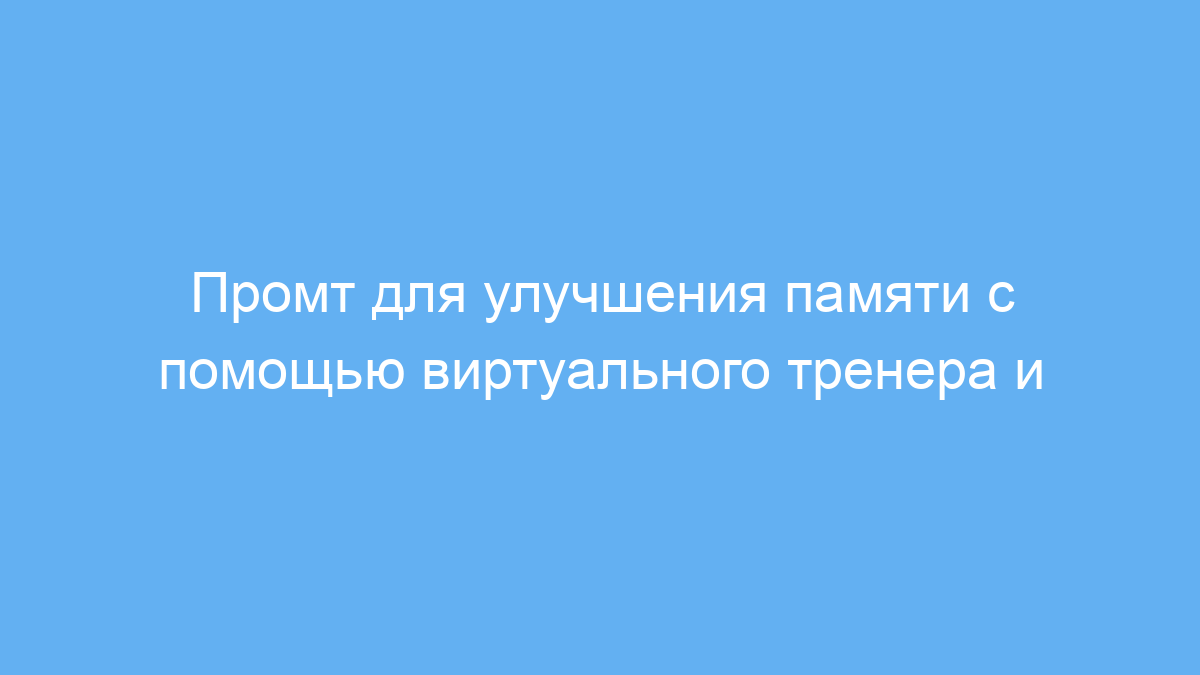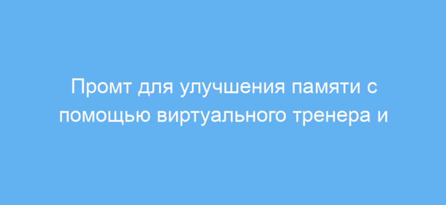 Принцип работы промта заключается в том, что нейросеть выступает в роли тренера, который подбирает индивидуальные методы улучшения памяти. Среди них — метод loci (дворец памяти), акронимы и визуализация. Промт рекомендует регулярные упражнения для тренировки памяти и изменения в образе жизни, такие как полноценный сон и физическая активность, что положительно влияет на работу мозга. Таким образом, промт помогает повысить способность к запоминанию, улучшить концентрацию и обрести уверенность в своих силах.