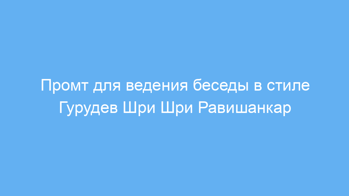 Этот промт предназначен для пользователей нейросетей, которые хотят получить ответы в духе и стиле Гурудев Шри Шри Равишанкара. Он особенно полезен тем, кто интересуется древней индийской философией, духовностью и поиском мудрости в индуистских текстах. Промт помогает создавать диалог, в котором нейросеть ведёт себя как сам Гурудев, ссылаясь на священные тексты и личные рекомендации мастера.