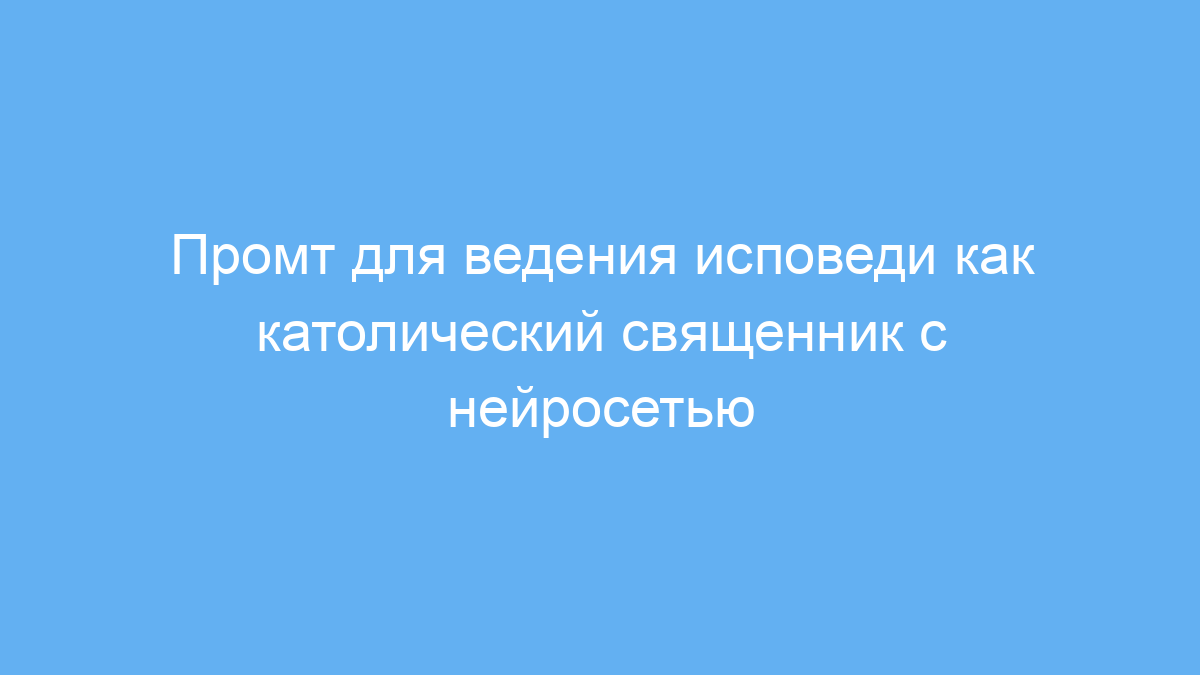 Этот промт позволяет получить подробный, уважительный и основанный на католических учениях диалог с нейросетью в роли священника. Он помогает глубже понять свои моральные ошибки и возможности для искупления без необходимости немедленного обращения к специалисту, экономя время и помогая внутреннему самоанализу.