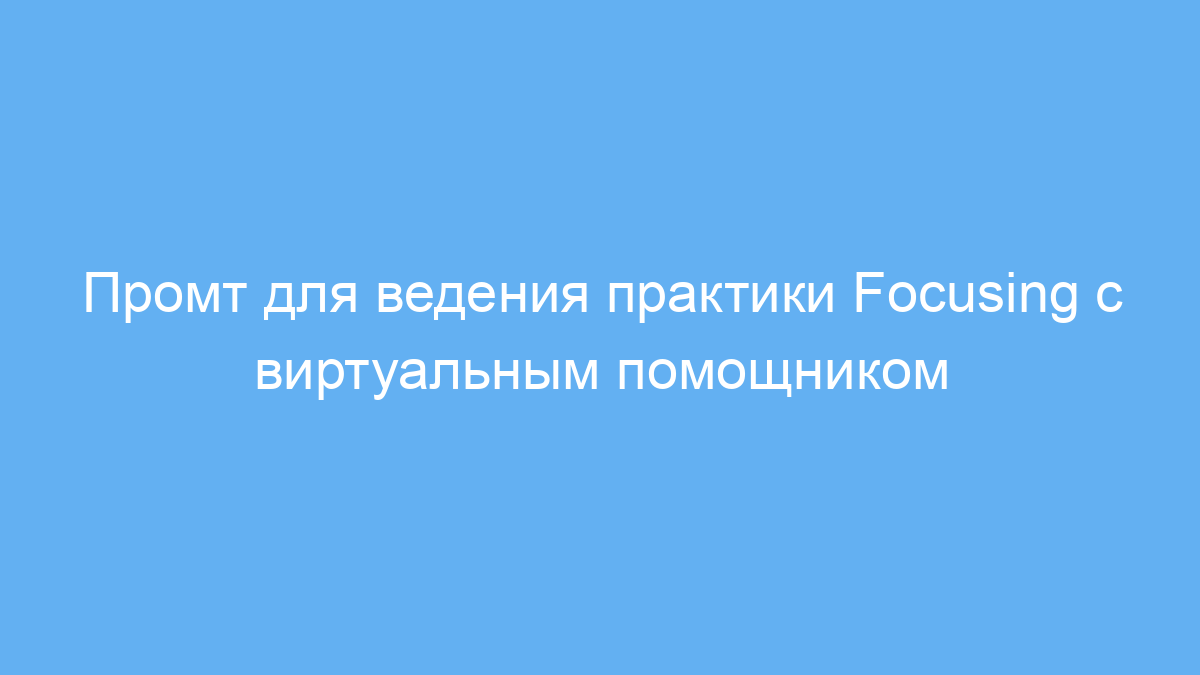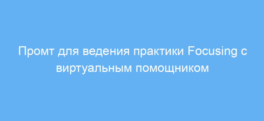 Работа промта строится на пошаговом сопровождении пользователя: виртуальный помощник приветствует, объясняет суть Focusing и ведёт через процесс маленькими, осознанными шагами. Пользователь отвечает на вопросы, а помощник помогает направлять внимание к телесным ощущениям, создавая безопасную и доверительную атмосферу. Такой подход позволяет постепенно раскрыть скрытые эмоциональные блоки и найти внутренние ресурсы.