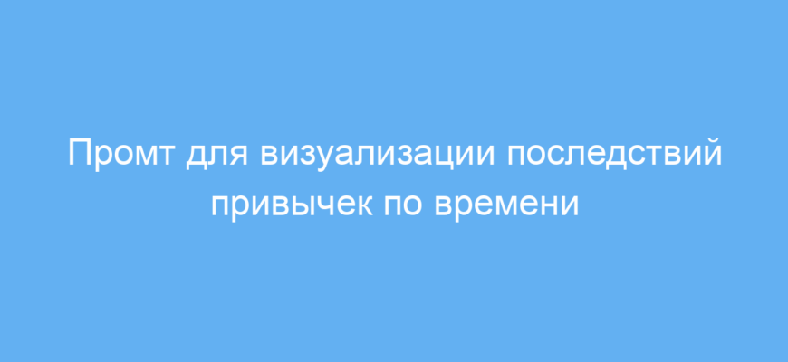 Этот промт подходит тем, кто хочет повысить мотивацию к поддержанию полезных привычек. Он помогает представить, как регулярное выполнение конкретной привычки влияет на разные аспекты жизни — карьеру, здоровье, семью, финансы и прочее — через разные возрастные периоды.