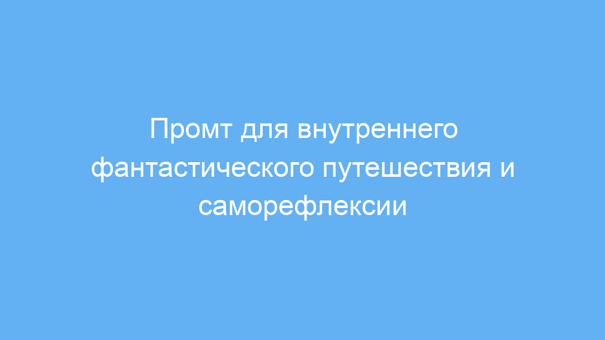 Этот промт предназначен для пользователей, которые хотят провести глубокое внутреннее исследование, улучшить самопознание и развить эмоциональный интеллект через фантастические воображаемые путешествия. Он помогает бороться со стрессом, усиливать личностный рост и находить новые инсайты, опираясь на направляемое воображение.