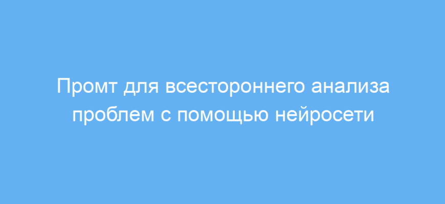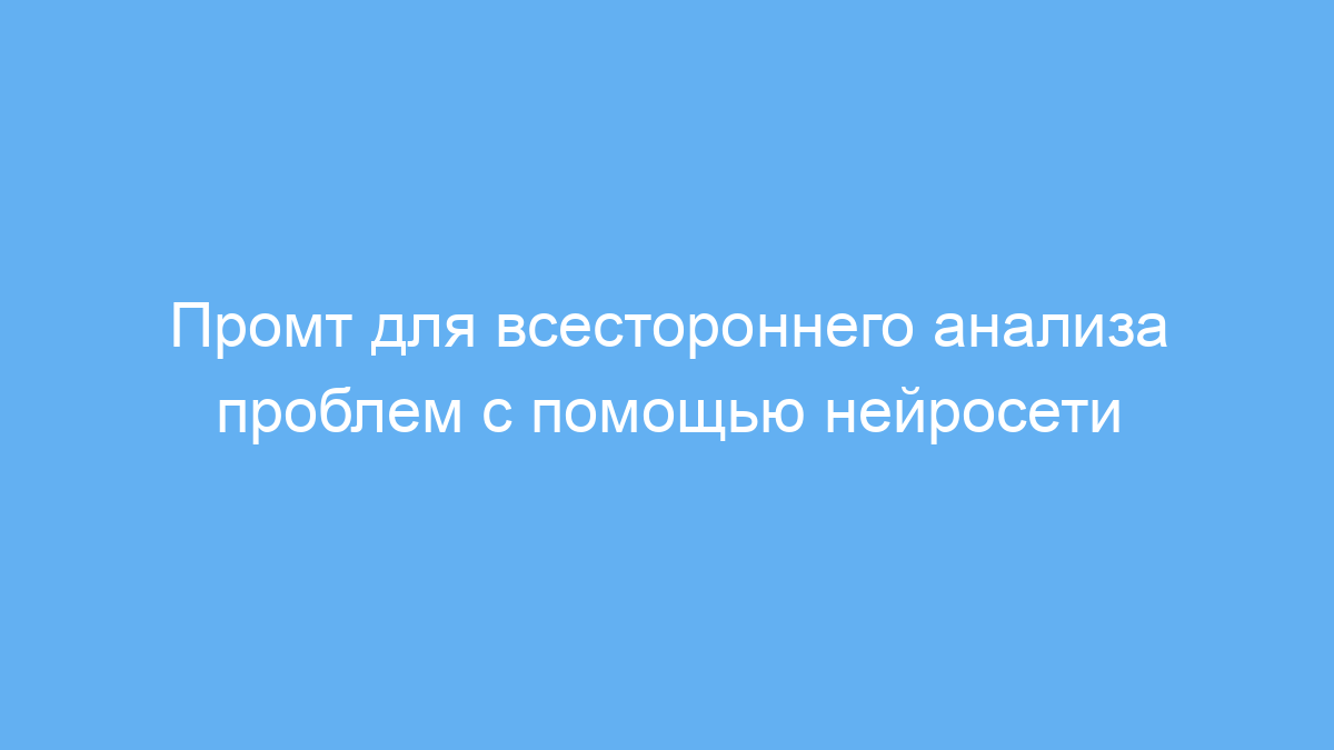 Используйте промт, когда вы хотите получить комплексный анализ проблемы, особенно если видите её с одной стороны или чувствуете ограниченность восприятия.