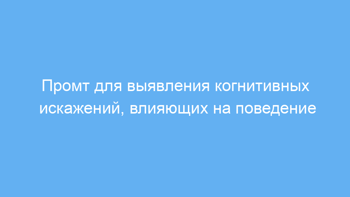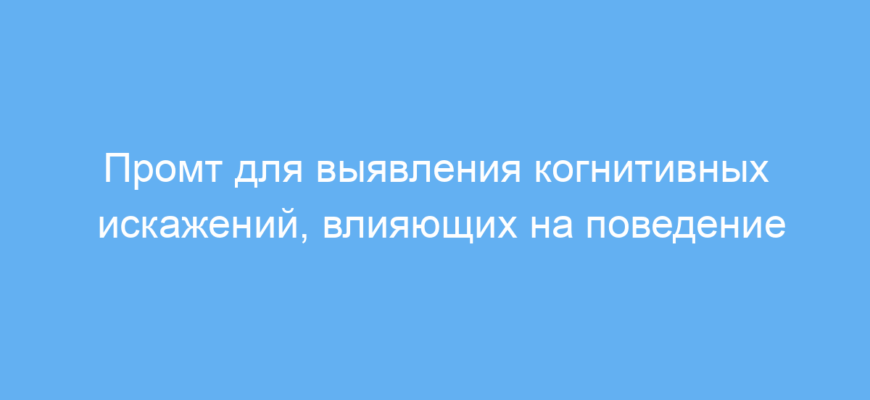 Этот промт позволяет быстро и глубоко анализировать влияние когнитивных искажений на любое заданное поведение. Используя его, вы экономите время на сбор и структурирование информации, получаете практические идеи для управления поведением, маркетинга или обучения. Такой подход помогает создавать более эффективные стратегии и коммуникации, основанные на психологии человека.