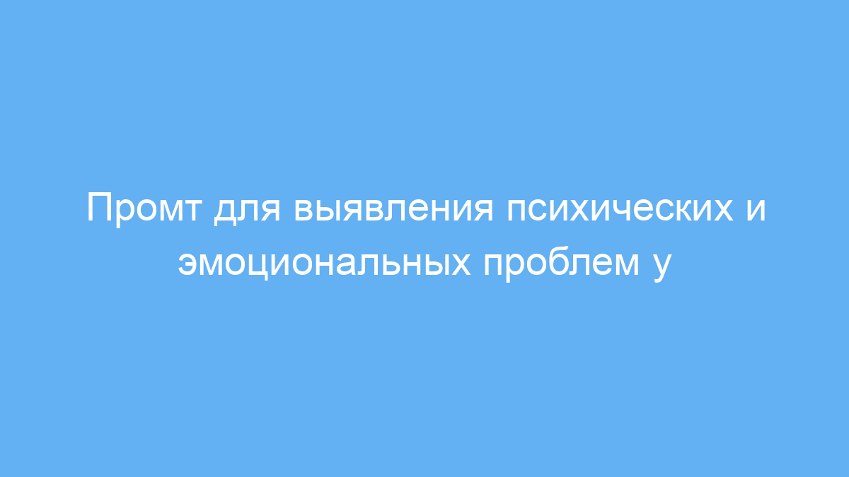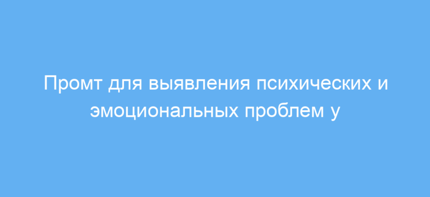 Этот промт создан для тех, кто хочет использовать нейросети для предварительной диагностики психического состояния или проблем в отношениях. Он помогает выявить наличие таких состояний, как депрессия, тревога, стресс, а также сложности в межличностных взаимоотношениях. Он подходит психологам, психотерапевтам, а также разработчикам чат-ботов и консультантам, работающим с пользователями, нуждающимися в поддержке.