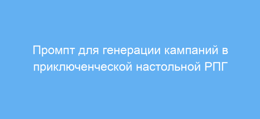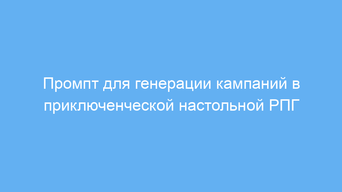 Использование данного промпта экономит время и усилия на создание продуманного мира и сюжета для приключенческой настольной ролевой игры. Он позволяет быстро получить структурированный материал, который можно адаптировать и развивать дальше, обеспечивая глубокое и насыщенное игровое приключение.