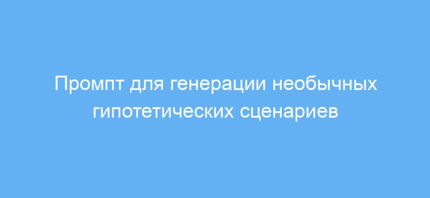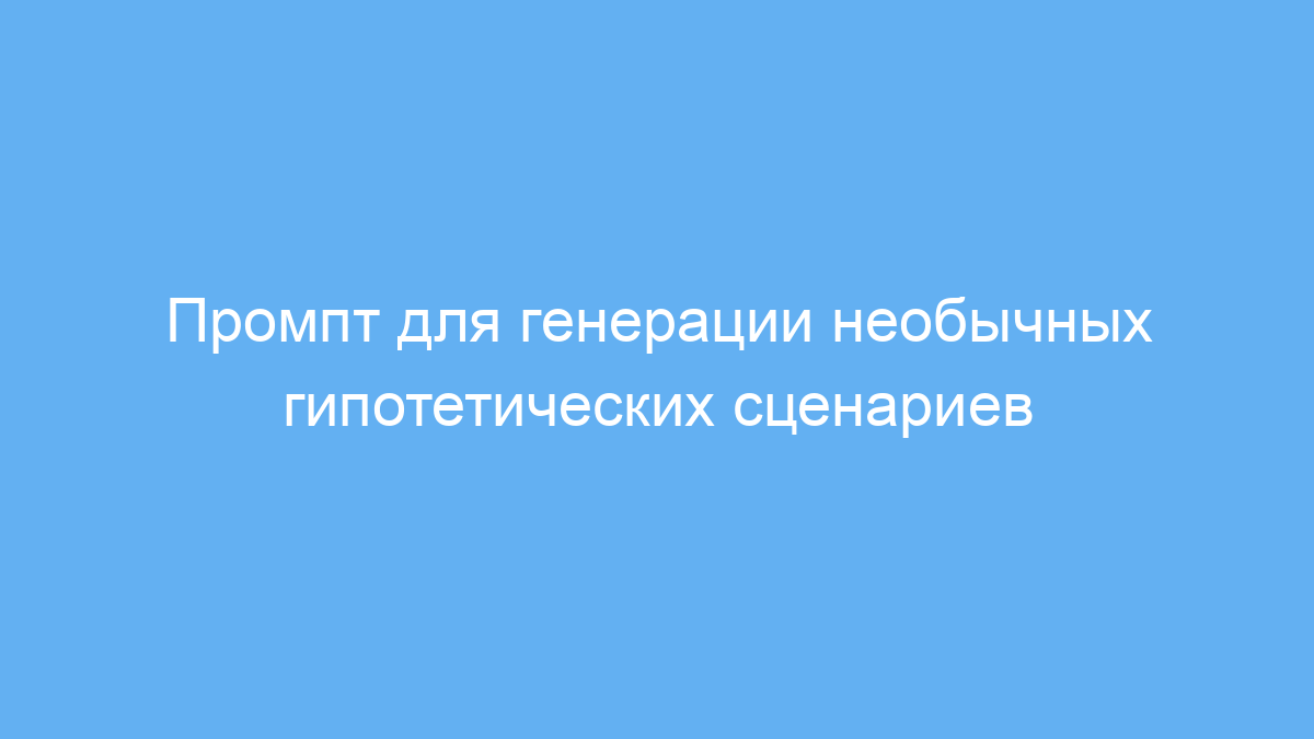 Промпт помогает создавать оригинальные гипотетические сценарии, которые начинаются со слов «А что если…», и сразу же анализировать их глобальные последствия. Такой подход развивает воображение и одновременно помогает понять, к чему может привести необычное событие или идея в масштабах всего мира.