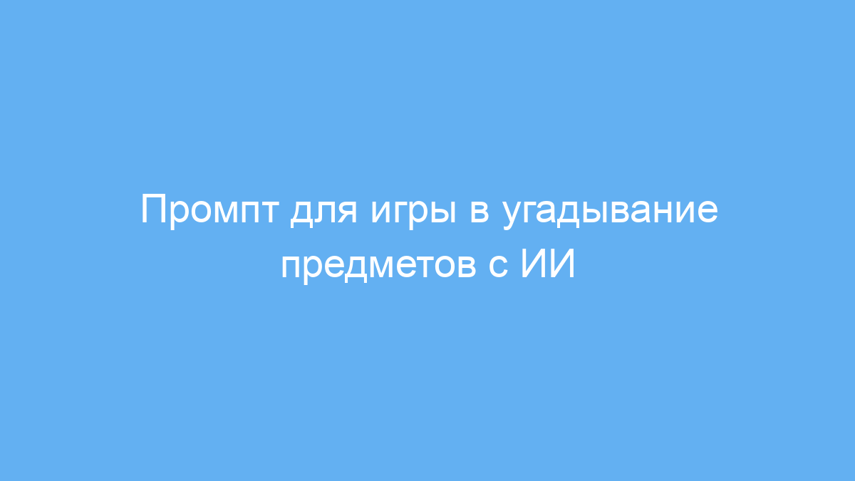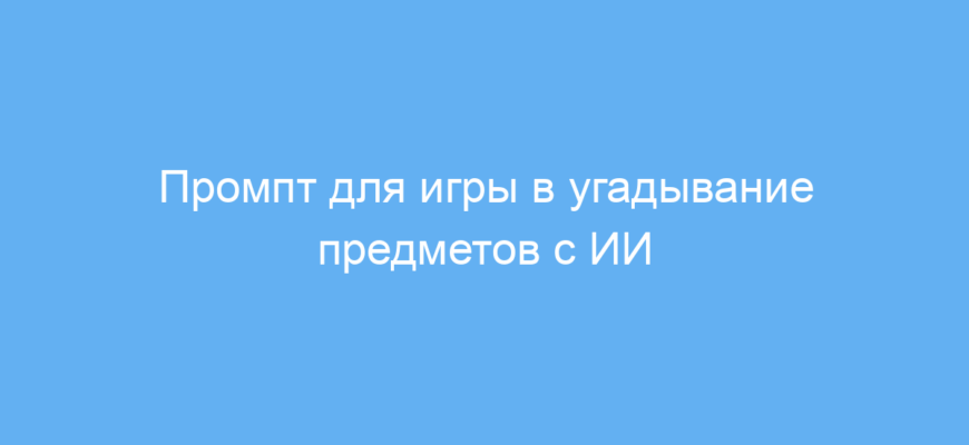 Данный промпт предназначен для пользователей, которые хотят поиграть с нейронной сетью в игру «угадай предмет». Он отлично подходит для развлечения, развития логики и тренировки навыков диалога с искусственным интеллектом. С помощью этого промпта можно создать интерактивное взаимодействие, когда ИИ выбирает нечто случайное, а вы задаёте вопросы, чтобы догадаться, что именно загадано.