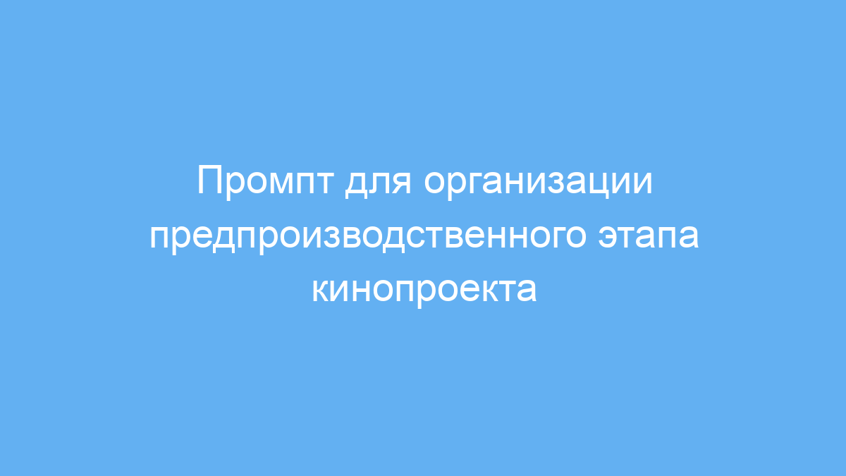 Промпт работает как готовая инструкция для нейросети, которая формирует понятный и последовательный план действий. Это помогает не забыть ни один важный шаг на предпроизводстве и оптимизирует процесс подготовки съёмок, снижая стресс и риски.