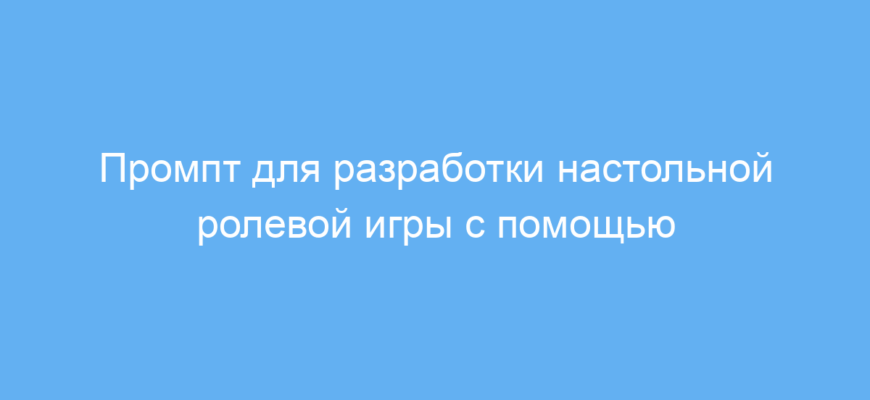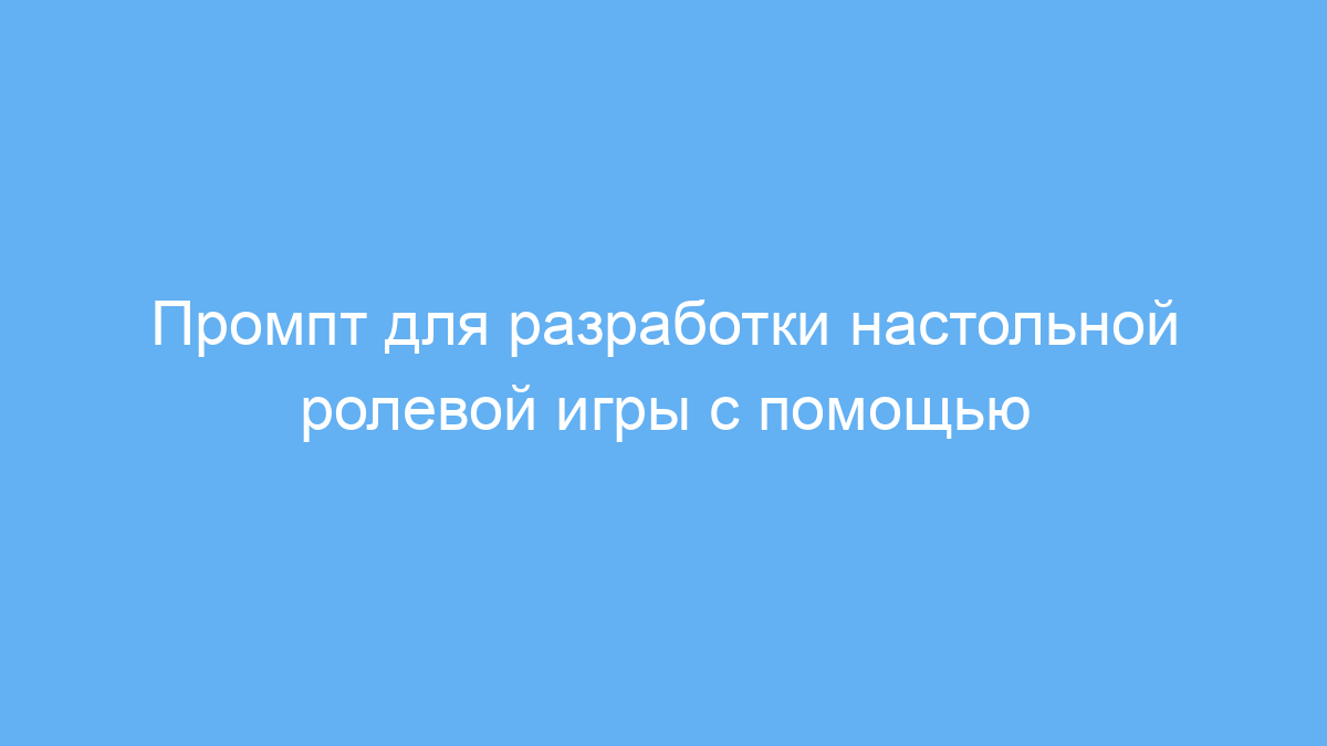 Этот промпт значительно упрощает создание динамичной и персонализированной настольной ролевой игры. Он позволяет сэкономить время на подготовку сюжета, создать интересный и разнообразный мир для игроков с разным опытом, а также поддерживать плавное и увлекательное взаимодействие во время сессий. ИИ-помощник помогает одновременно новичкам и ветеранам, делая игру доступной и захватывающей для всех.