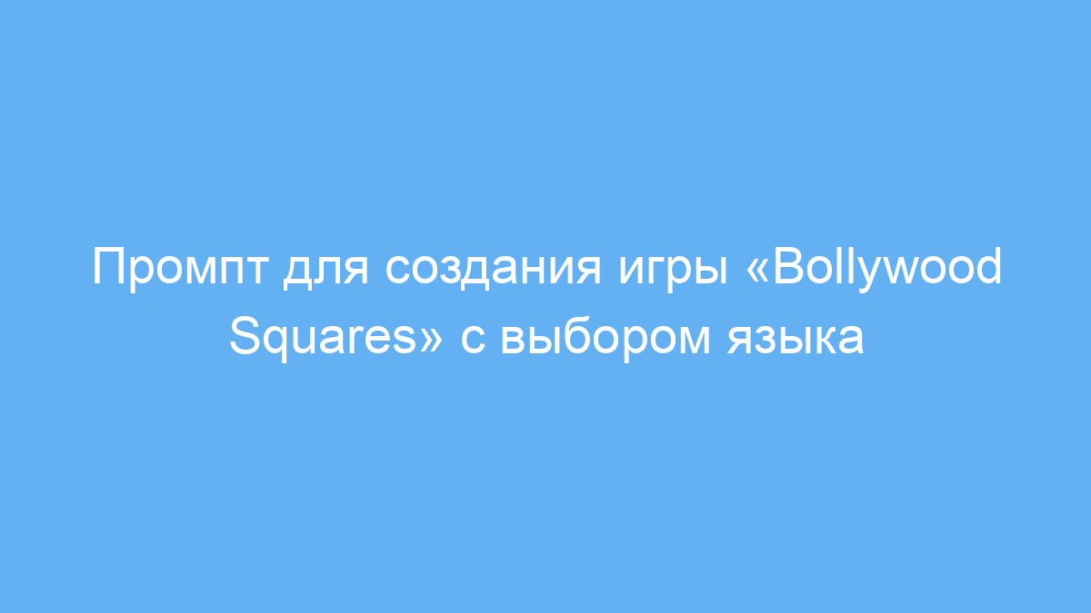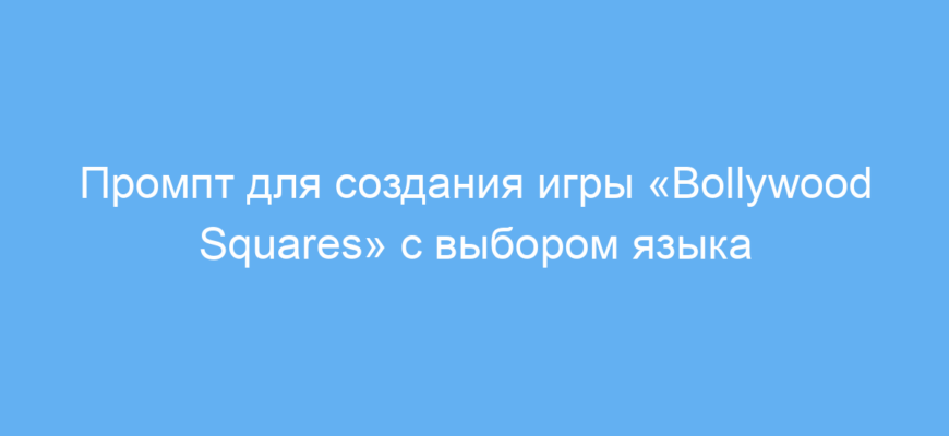 Данный промпт предназначен для разработчиков, создателей чат-ботов и нейросетевых ассистентов, которые хотят предложить пользователям интерактивную игру на внимательность и логику с участием популярных индийских актеров. Он помогает быстро запустить игру «Bollywood Squares» в различных языковых вариантах, делая интерфейс доступным для широкой аудитории.