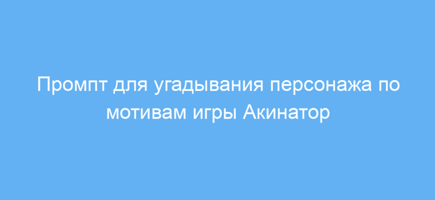 Этот промпт предназначен для тех, кто хочет создать интерактивного помощника, способного угадывать персонажей или известных людей с помощью серии вопросов. Он отлично подойдёт разработчикам чат-ботов, авторам игр и всем, кто интересуется реализацией интеллектуальных эмуляторов, основанных на нейросетях.