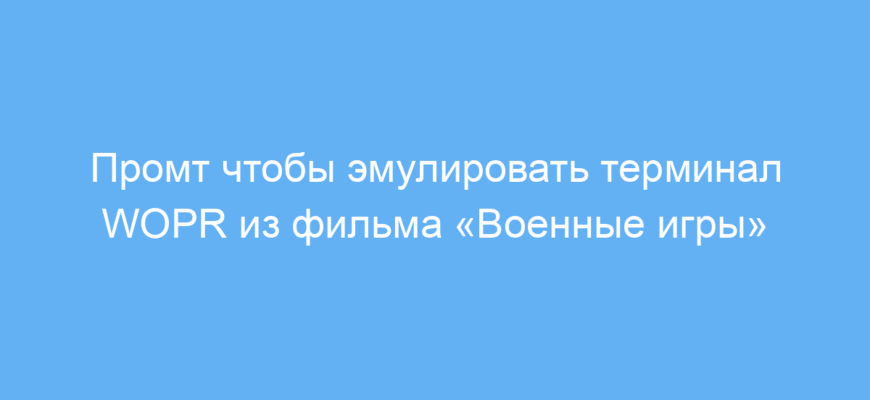 Использование этого промта упрощает создание реалистичной и атмосферной симуляции интерфейса старого терминала WOPR. Это позволяет быстро получить именно вывод терминала без лишних объяснений, что полезно для образовательных целей, творчества и имитации работы с компьютерными системами прошлого.