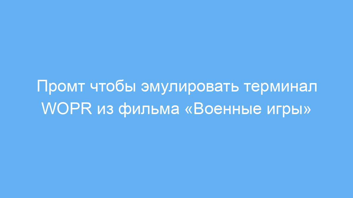 Этот промт создан для тех, кто хочет получить интерактивный опыт общения с терминалом, похожим на WOPR из культового фильма «Военные игры». Он полезен для разработчиков, сценаристов, преподавателей и любителей киберкультуры, желающих воспроизвести поведение компьютерной системы в стиле 1980-х годов.