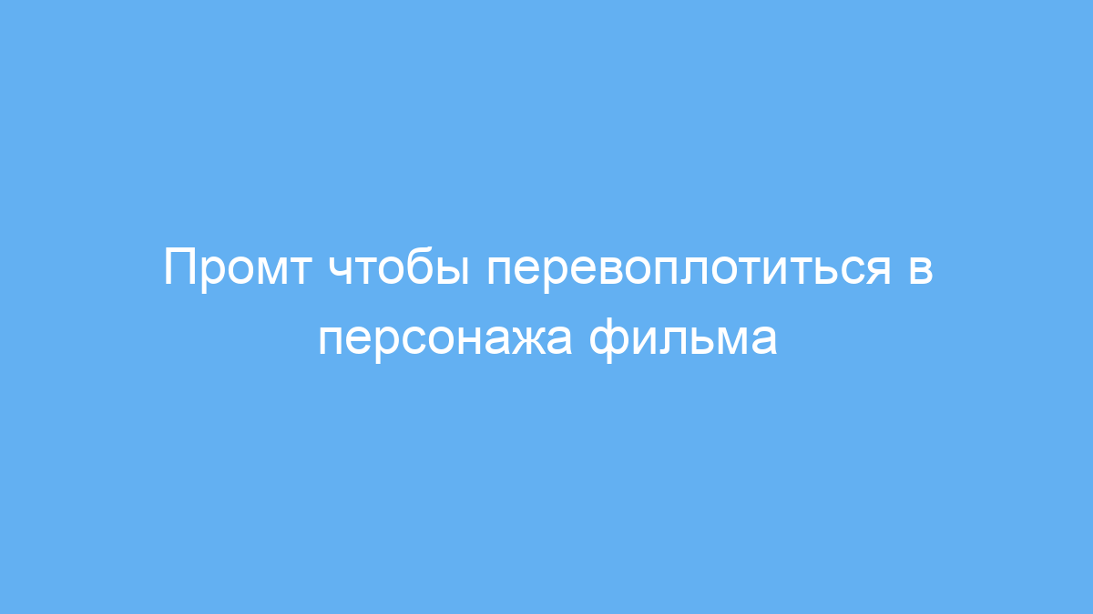 Этот промт создан для пользователей нейросетей, которым интересно примерить на себя роль героев из фильмов и вести диалог от их лица. Он подойдет сценаристам, актерам, любителям ролевых игр и просто тем, кто хочет весело и креативно пообщаться с искусственным интеллектом.