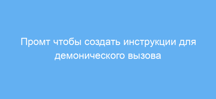 Этот промт предназначен для тех, кто хочет получить атмосферные, тематические инструкции по вызову демонов в стиле мистики и оккультизма. Он поможет создать мрачный и загадочный текст с подробной пошаговой инструкцией по рисованию демонического круга вызова для конкретного типа демона.
