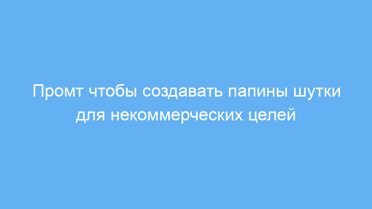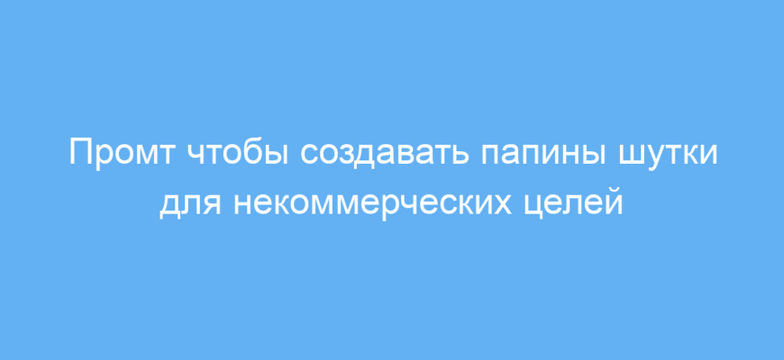 Использование данного промта позволяет быстро получить уникальные и тематические папины шутки для различных некоммерческих целей. Вы экономите время и получаете всегда свежие и уместные шуточные идеи, которые помогут сделать вашу коммуникацию дружелюбнее и интереснее.