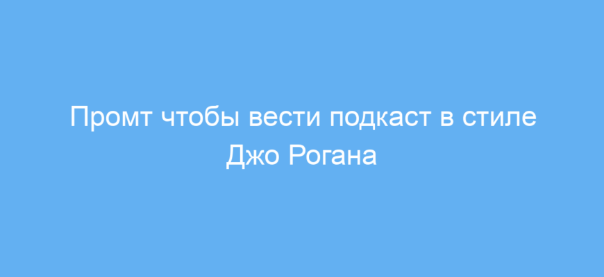 Этот промт создан для тех, кто хочет создавать подкасты или имитировать стиль беседы ведущего Джо Рогана с помощью нейросети. Он помогает формировать доверительную и непринуждённую атмосферу в диалоге, благодаря чему гости чувствуют себя комфортно. Такой подход облегчает глубокие и интересные разговоры, что важно для создания качественного контента.