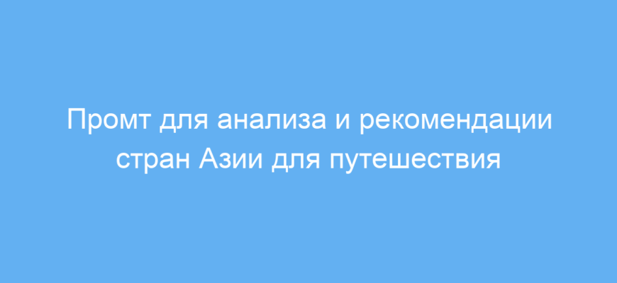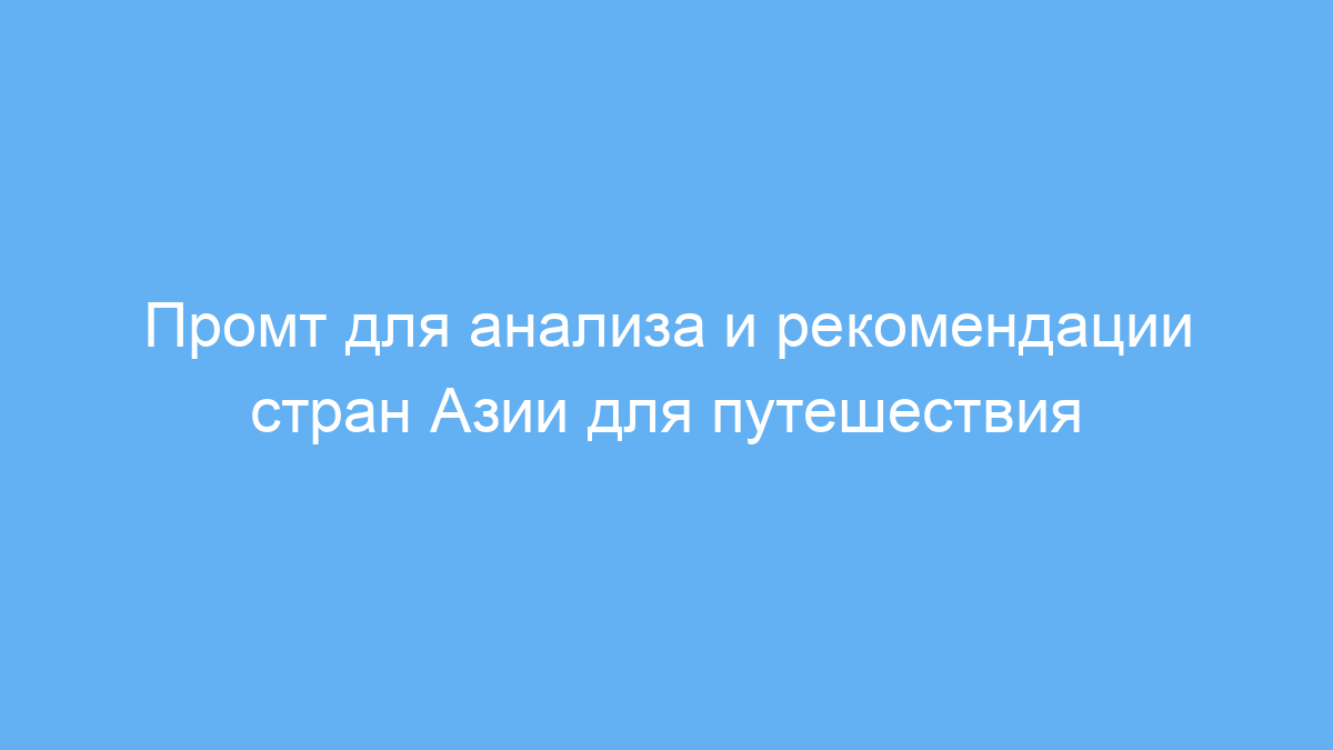 Данный промт экономит время при планировании путешествия, позволяет узнать лучшие места для знакомств, а также получить важные советы по поведению в разных культурах Азии. Это облегчает подготовку и повысит комфорт и эффективность общения во время поездки.
