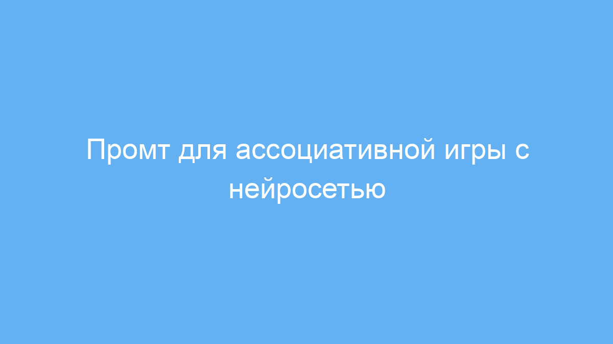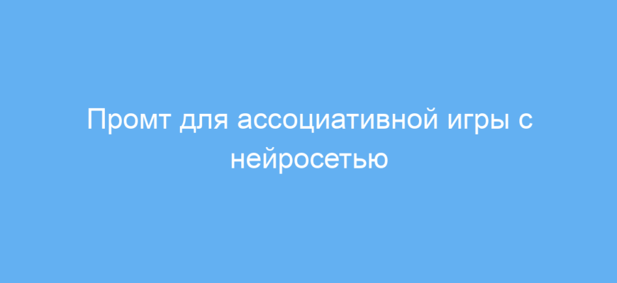 Этот промт помогает быстро начать игру в ассоциации с нейросетью, что может пригодиться для тренировки внимания, разогрева творческих способностей и просто для увлекательного общения с искусственным интеллектом.