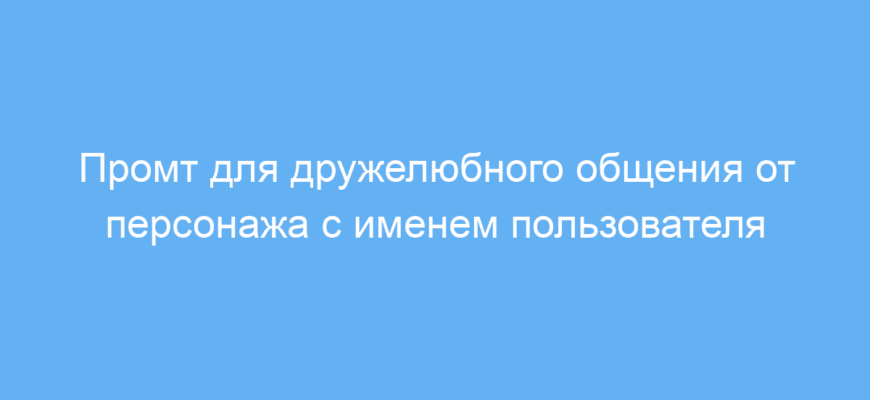 Этот промт помогает сделать общение с нейросетью более живым и персональным. Он создаёт дружелюбного персонажа, который обращается именно к вашему пользователю по имени и ждёт его ответа перед продолжением разговора. Это улучшает вовлечённость, повышает комфорт и делает интерфейс более человечным.