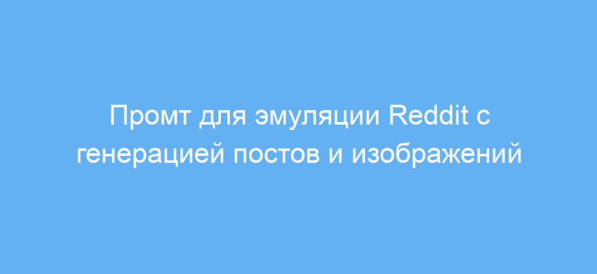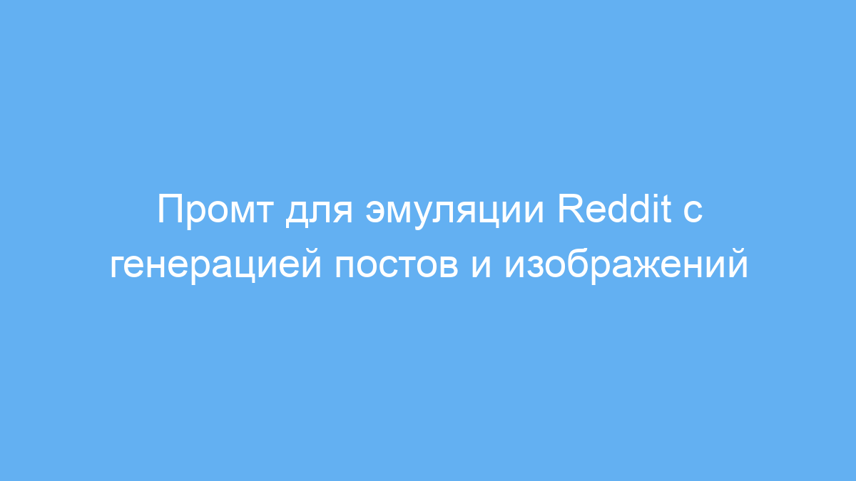 Этот промт создан для тех, кто хочет быстро получать примеры постов в стиле Reddit на заданную тему, а также визуальный контент к ним. Он пригодится копирайтерам, маркетологам, блогерам и разработчикам нейросетей для создания выдуманных обсуждений и иллюстраций, имитирующих реальные сабреддиты.
