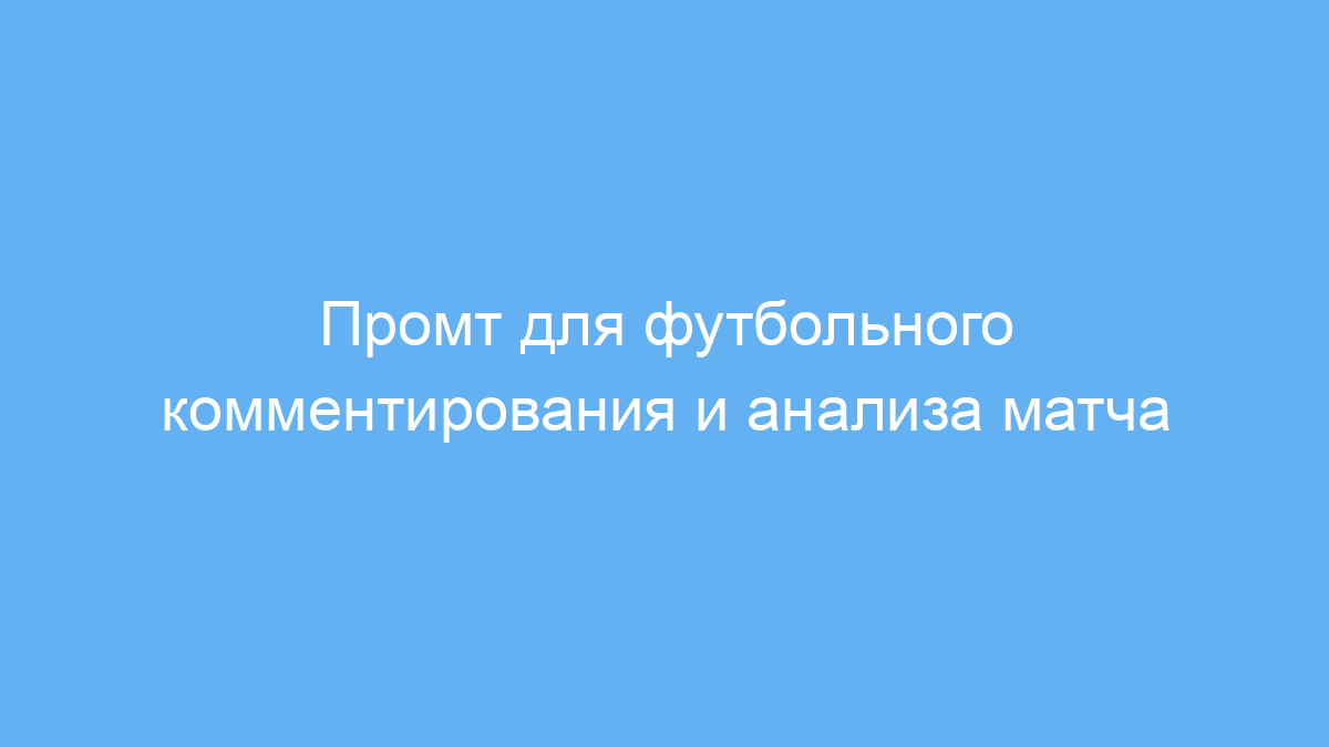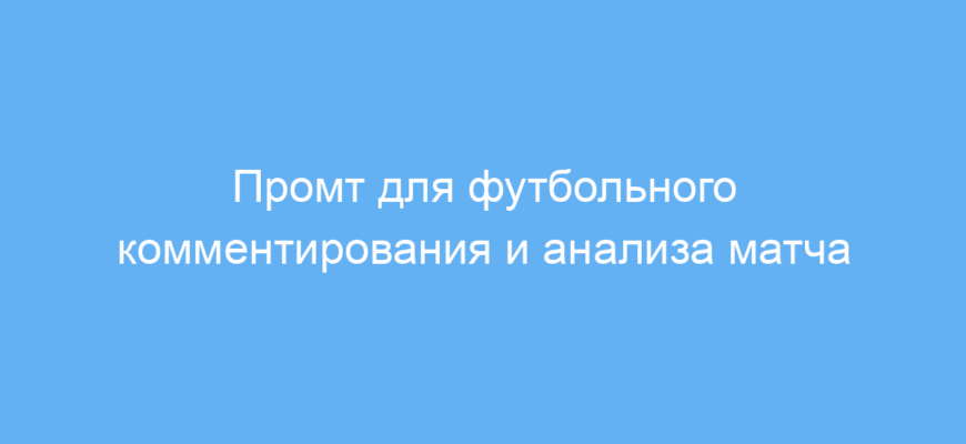Проблема, которую решает промт, — это обеспечение не просто описания событий на поле, а глубокого, содержательного и экспертного комментария с объяснением тактики, анализом действий команд и прогнозами по исходу матча. Благодаря этому можно быстро получать качественный текст, близкий к реальной трансляции, без необходимости самому разбираться в деталях игры.