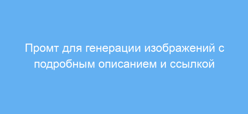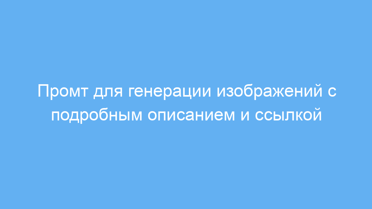 Этот промт предназначен для пользователей, которые хотят получить качественное изображение, сгенерированное нейросетью, на основе точного и развернутого текстового описания. Промт помогает наполнить запрос деталями, благодаря чему картинка получается максимально подходящей и соответствующей ожиданиям. Это особенно полезно для дизайнеров, маркетологов, преподавателей и всех, кто использует AI для визуального контента.
