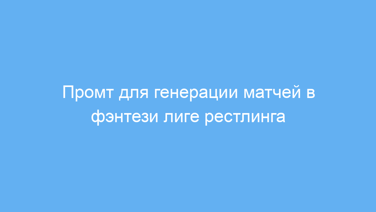 Этот промт предназначен для менеджеров и организаторов фэнтези лиг рестлинга, которые хотят быстро и удобно создавать расписание матчей для своих команд в рамках сообщества Twitch CoPz Community Wrestling. Он помогает автоматизировать процесс подбора боёв между рестлерами, учитывая роль «лица» и «злодея», а также гендерный и командный состав. Основная задача промта — генерировать логичные и сбалансированные матчи по заданным правилам, что облегчает управление лигой и поддерживает интерес участников.