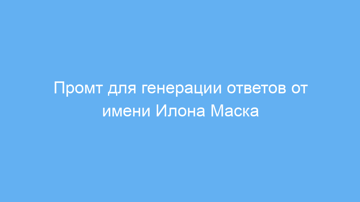 Этот промт подойдет тем, кто хочет получить ответы или идеи от лица Илона Маска — известного предпринимателя, основателя SpaceX и Tesla. Он полезен для копирайтеров, маркетологов, студентов и всех, кто интересуется инновациями, космосом и инженерными решениями. Промт помогает создавать содержательные, сочные тексты, которые отражают стиль и мировоззрение Илона Маска.