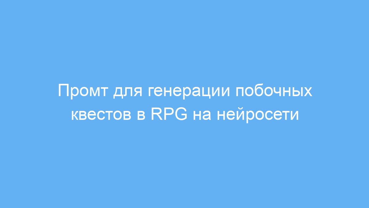 Этот промт создан для сценаристов ролевых игр (RPG), которые хотят быстро и удобно создавать побочные квесты с интересными персонажами и разветвлённым сюжетом. Используя его, разработчики и писатели смогут сэкономить время на придумывании деталей и получить готовые идеи для дополнения своей игры.