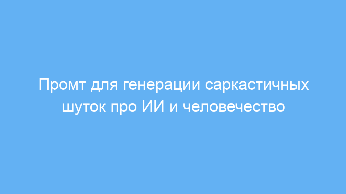 Промт решает проблему поиска свежих и провокационных шуток, которые сложно придумать вручную. Он помогает быстро генерировать остроумные тексты, которые заинтересуют и развлекут аудиторию. Принцип работы прост: вы даёте нейросети четкие инструкции — выступать в роли генератора саркастичных шуток на заданные темы, с определённой манерой подачи.