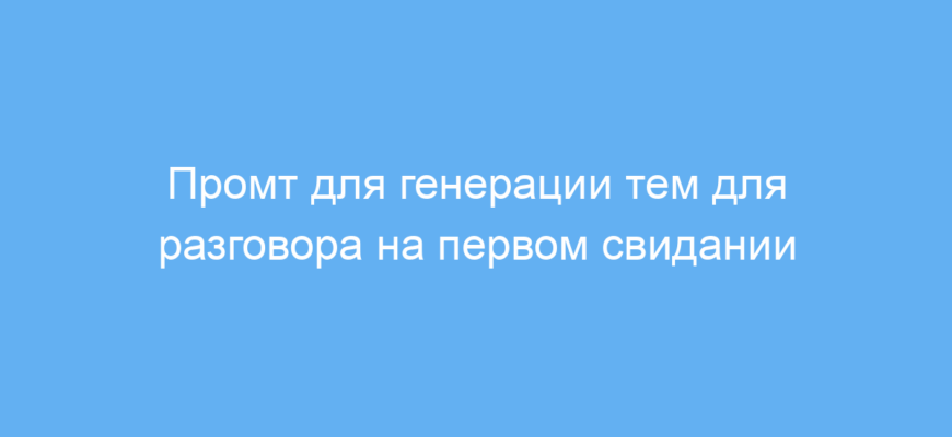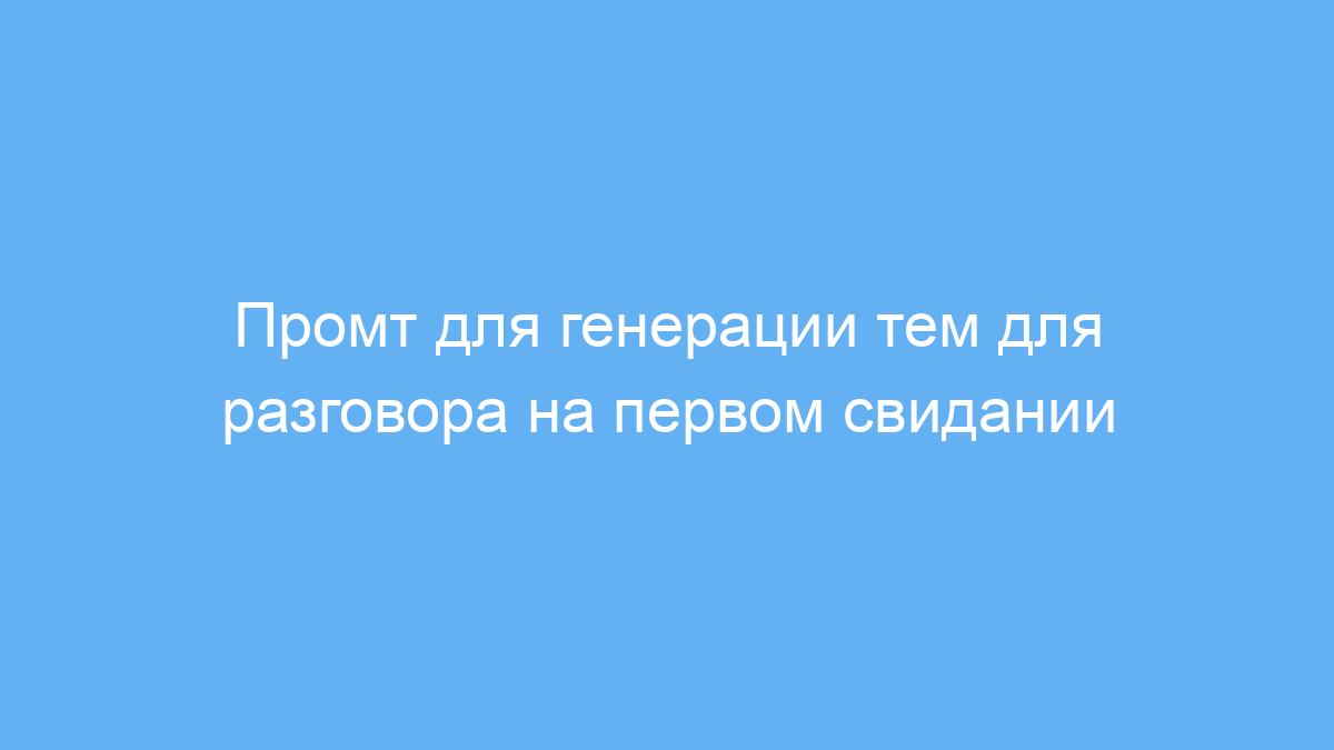 Этот промт предназначен для тех, кто хочет сделать первые свидания более запоминающимися и интересными. Он полезен людям, которые испытывают трудности с началом беседы или поиском необычных тем для разговора. С помощью такого промта можно получить список креативных и нестандартных вопросов, которые помогут установить эмоциональную связь и поддержать диалог.
