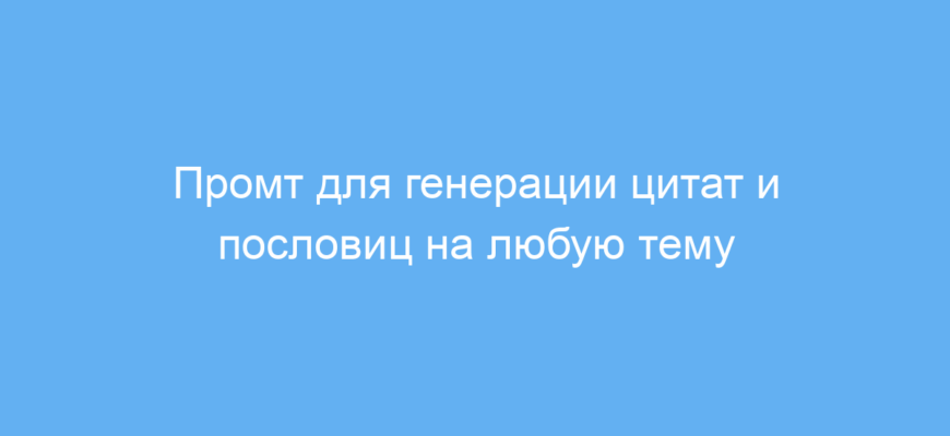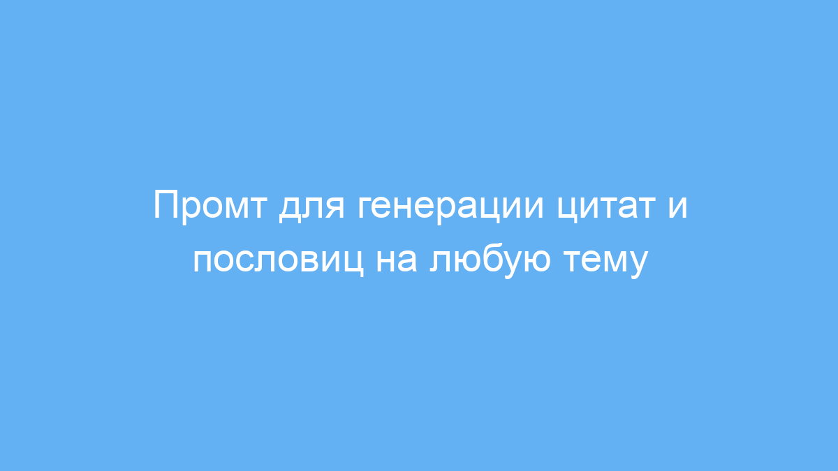 Этот промт создан для пользователей, которые хотят быстро получать существующие цитаты, изречения или пословицы по заданной теме. Его удобно использовать писателям, блогерам, студентам и всем, кто ищет вдохновение или выражения мыслей известных авторов.