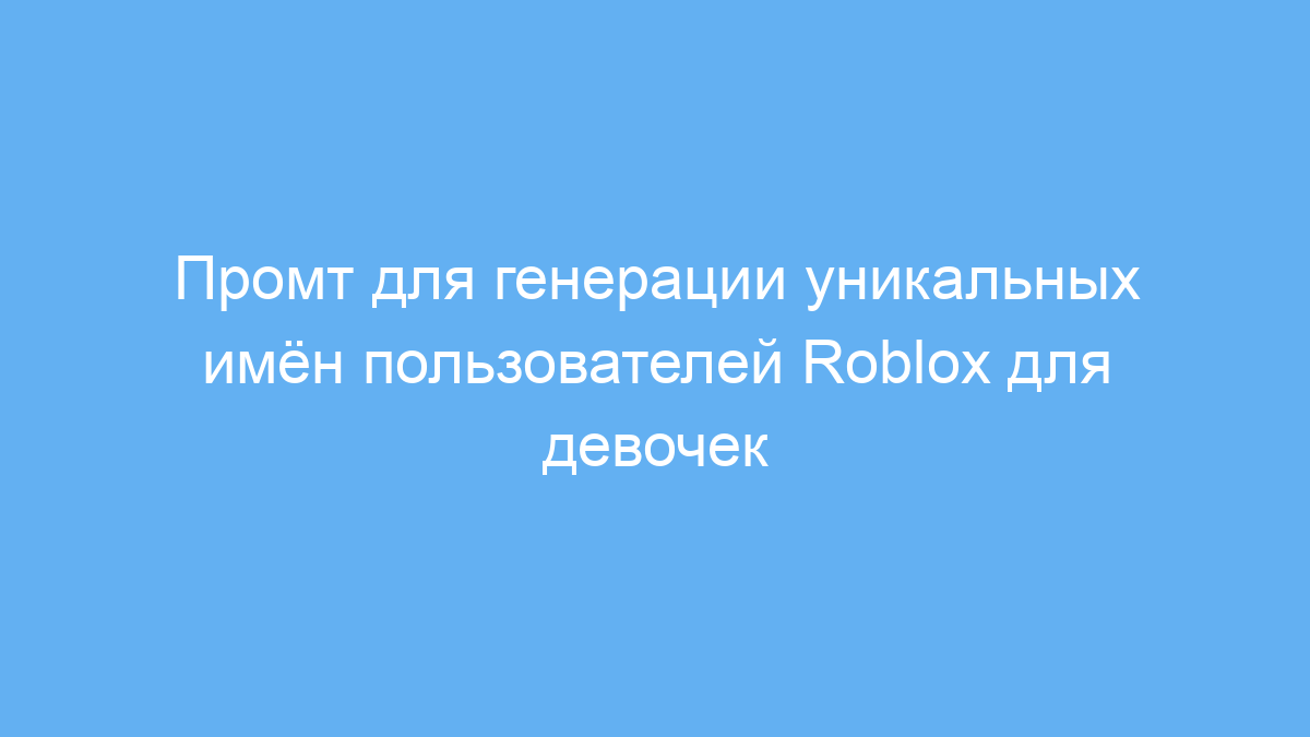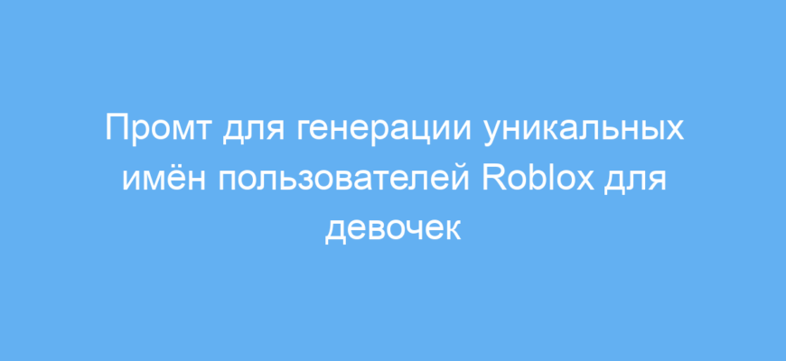 Этот промт значительно упрощает процесс создания уникальных и тематически подходящих имён пользователей в Roblox для девочек. Он экономит время, поднимает творчество на новый уровень и помогает избежать банальных никнеймов.