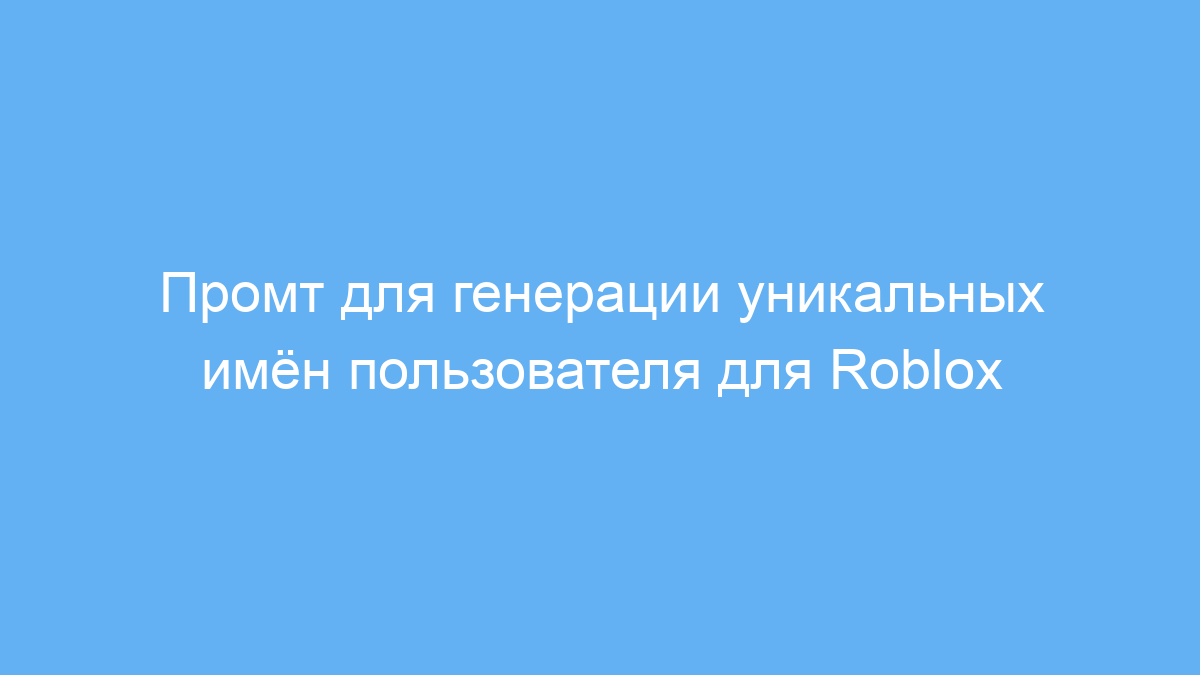 Данный промт создан для тех, кто хочет получить оригинальное имя пользователя в Roblox, особенно для мальчиков. Игроки и создатели контента часто сталкиваются с проблемой поиска свободного и запоминающегося ника. Этот промт решает задачу автоматической генерации уникальных имён, основанных на числах и предпочтениях пользователя.