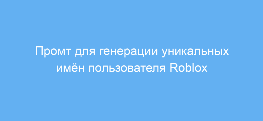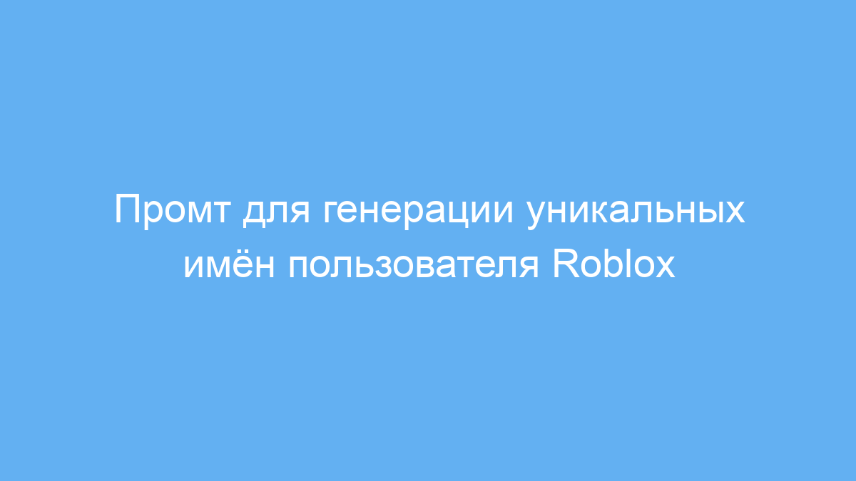 Этот промт предназначен для тех, кто хочет быстро и легко создать уникальное имя пользователя для Roblox. Он полезен игрокам, которые испытывают трудности с выбором оригинального ника, соответствующего их полу и интересам. Использование такого промта помогает сэкономить время и найти интересные имена, которые выделят аккаунт среди других.