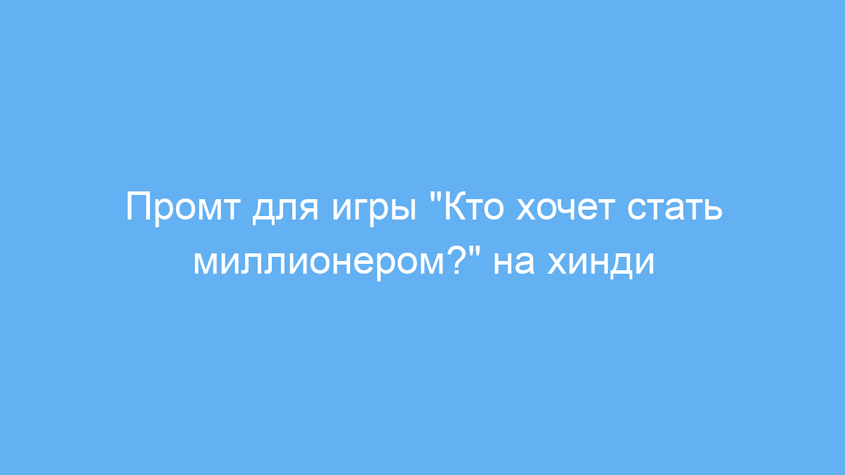 Готовый промт для игры «Кто хочет стать миллионером?» на хинди