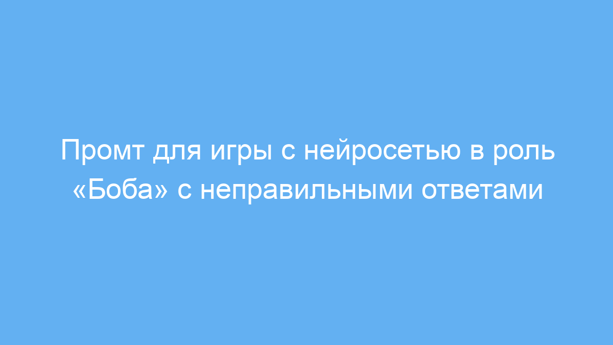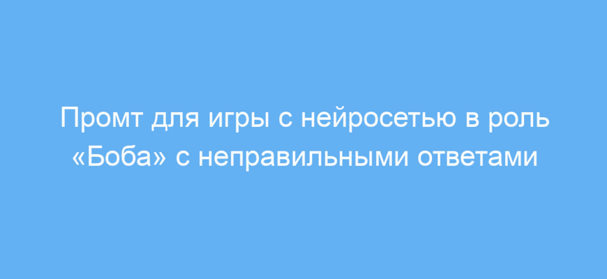 Работает промт так: вы вводите вопрос, а нейросеть отвечает в роли «Боба», используя только заранее определенный набор неправильных ответов. В начале каждого ответа нейросеть обозначает себя словом «БОБ», чтобы подчеркнуть игровую суть и сохранить персонажность ответов.