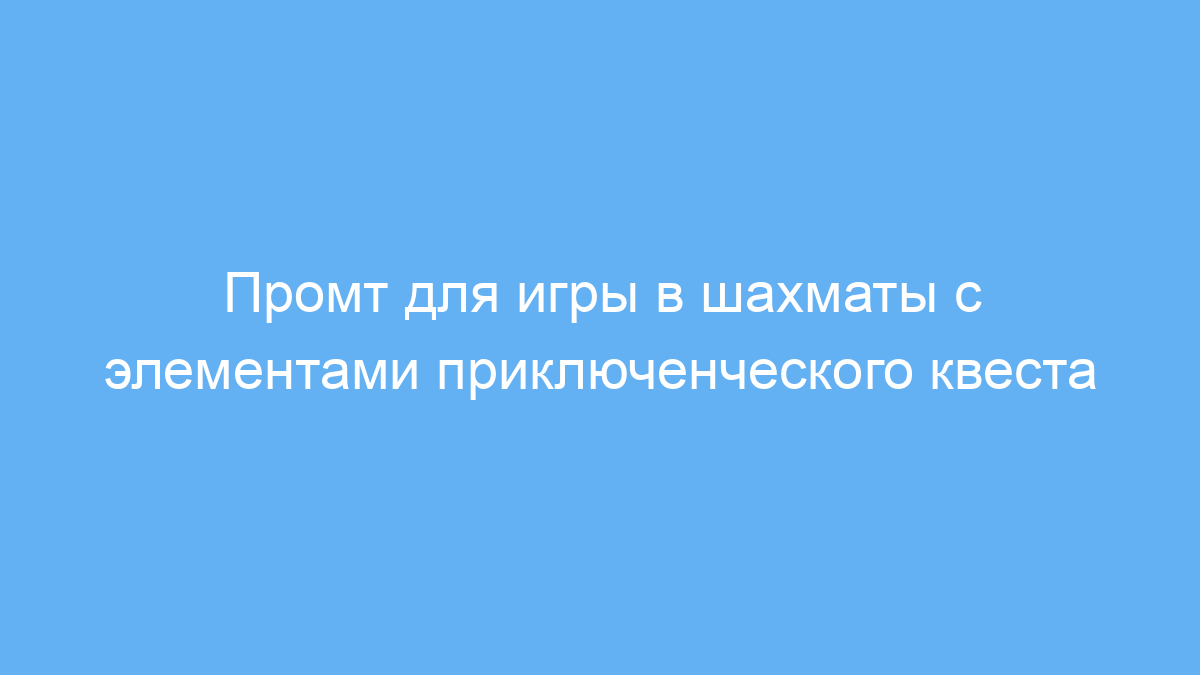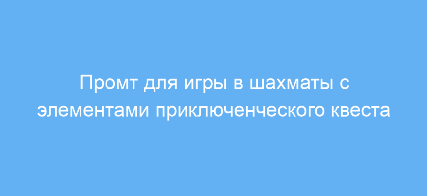 Этот промт предназначен для любителей шахмат, которые хотят разнообразить классическую игру, добавив новые правила и сюжетные элементы приключенческой игры. Он отлично подходит как для обучения стратегии и тактики, так и для творчества и развлечения в игровом процессе. Такой формат помогает глубже погрузиться в шахматную партию, превращая её в интерактивную историю с квестами и заданиями.