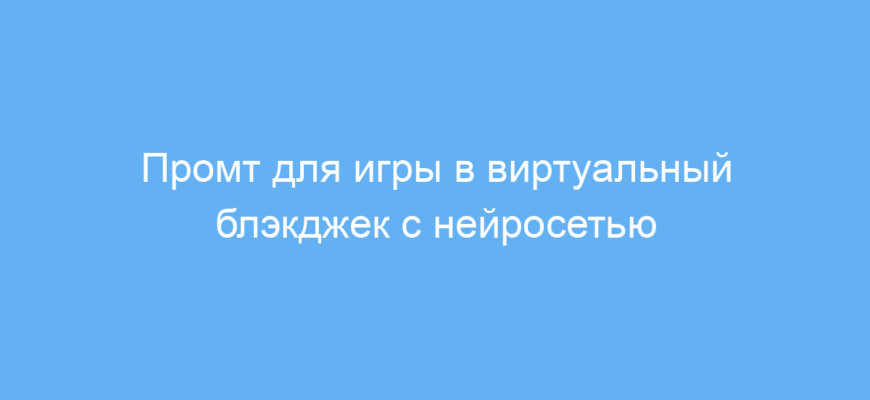 Промт содержит описание правил и механик игры, он задаёт структуру ходов и запросов к игроку — от запроса имени до действий в игре. Нейросеть получает пошаговое руководство для симуляции партий блэкджека, что позволяет ей вести диалог, помогать принимать решения, отслеживать карты и сообщать результаты. Это экономит время на программирование сложной логики и делает процесс максимально естественным для пользователя.