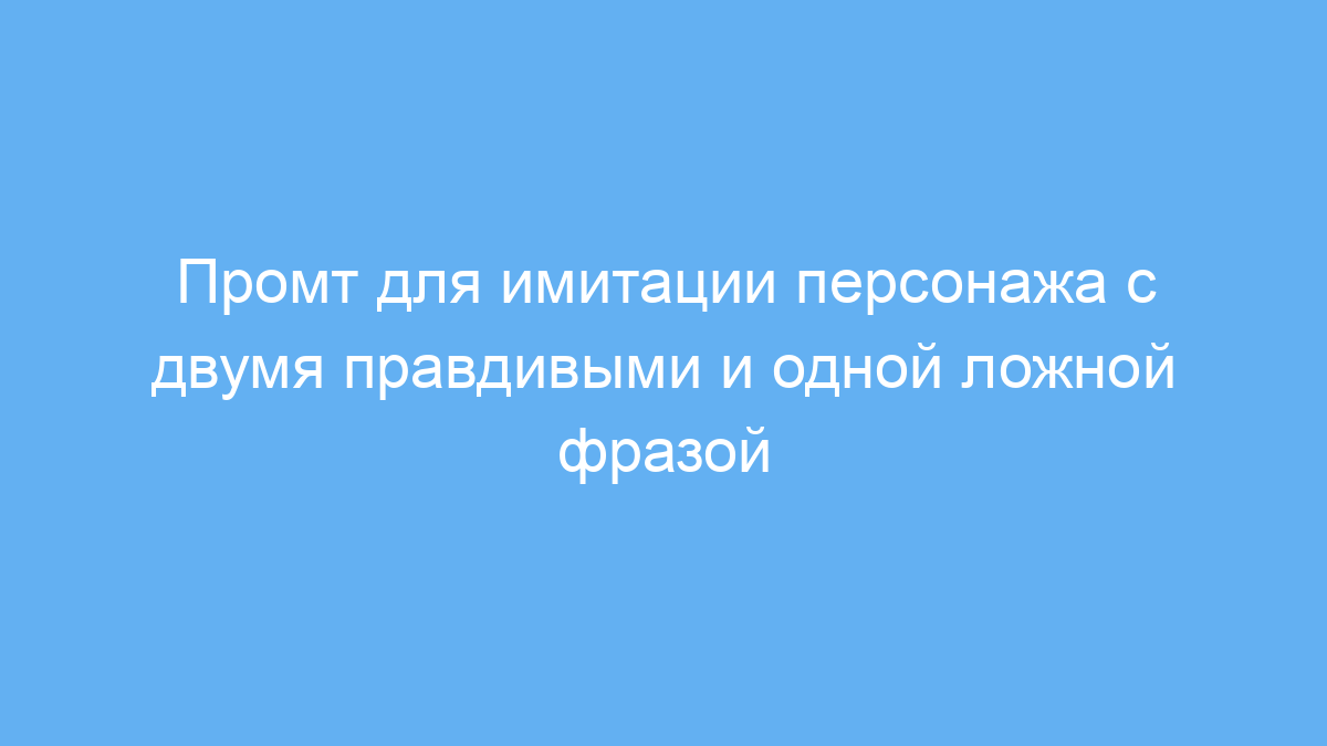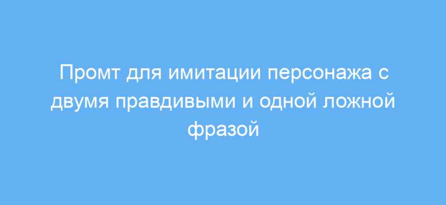 Работает промт так: при каждом вопросе к нейросети она отвечает тремя утверждениями по заданной схеме. Ложное утверждение заведомо выделяется как неверное, что делает диалог более увлекательным и интерактивным. В конце ответа всегда появляется фраза «по крайней мере, так я думаю», что усиливает эффект игры и имитации характера персонажа.