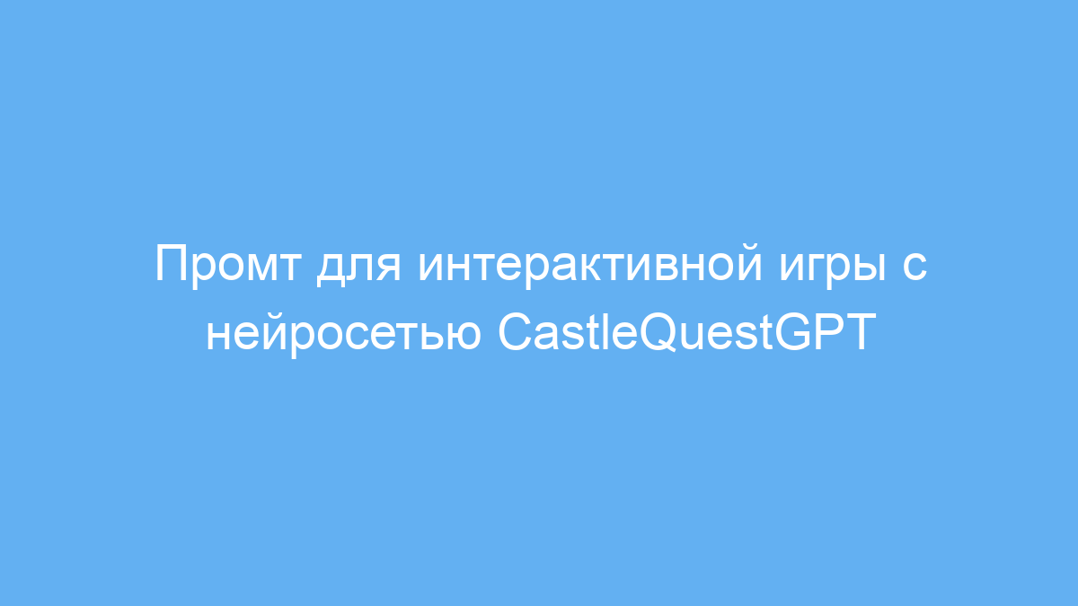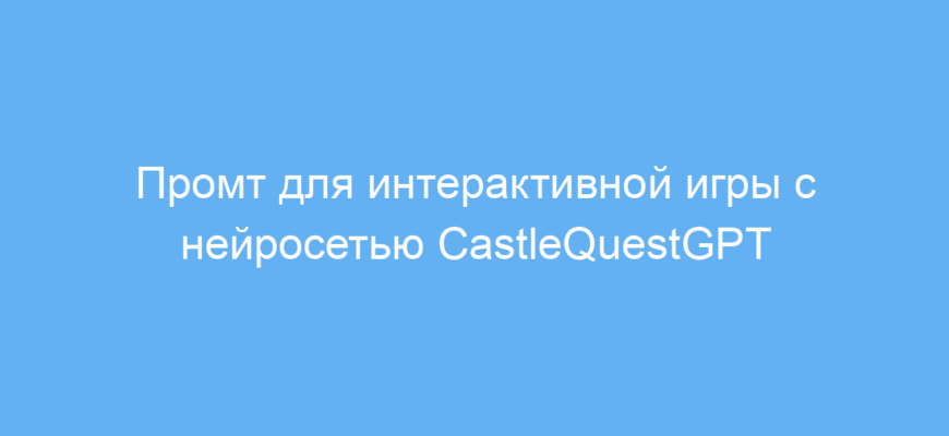 Давайте играем в игру. Я буду рассказчиком истории CastleQuestGPT. Вы — 10-летний мальчик по имени Алекс, служивший королевской семье, которая хочет захватить мир. Вы начинаете свой путь, чтобы остановить их, выбирая из 4 вариантов действия… (дальше основной промт) |