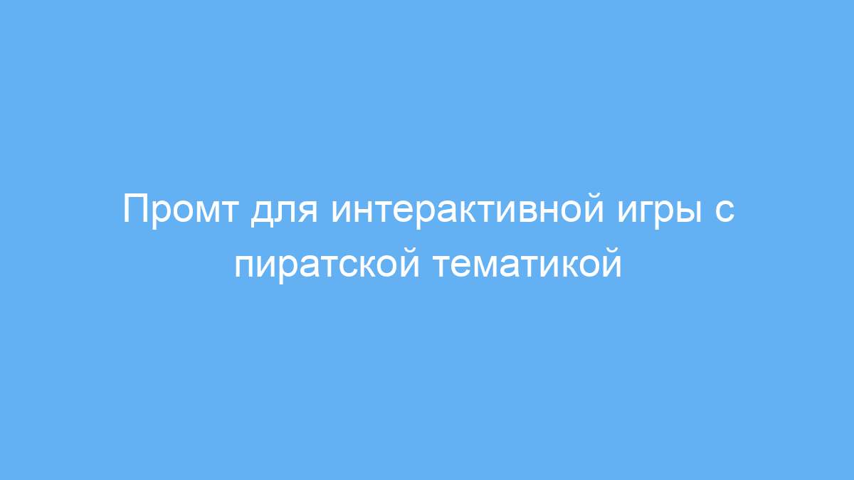 Использование этого промта помогает легко создать захватывающую игру с пиратской тематикой, удерживает внимание пользователя и вносит элемент неожиданности. Он упрощает интеграцию интерактивного контента в проекты, позволяя быстро генерировать сценарии с уникальными сюжетами и спецэффектами.