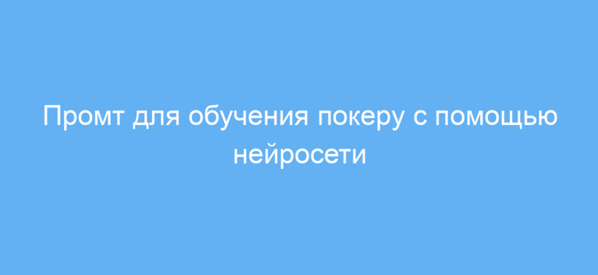 Этот промт предназначен для игроков в покер, которые хотят улучшить свои навыки и лучше понять игру. С его помощью можно тренироваться в разных уровнях сложности — от легкого до сложного. Он помогает понять основы игры, принимать правильные решения и почувствовать себя увереннее за покерным столом.