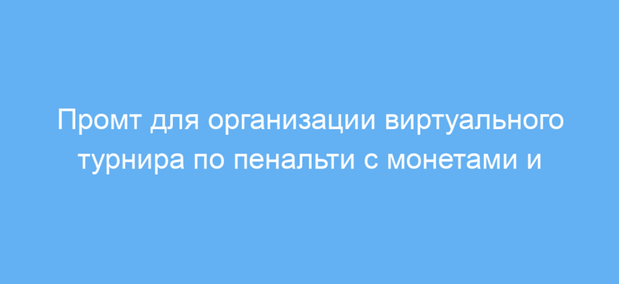 Этот промт предназначен для разработчиков игр, образовательных проектов, маркетологов и всех, кто хочет создать интерактивный симулятор серии пенальти с функцией ставок и развития команды. Он помогает быстро получить готовую структуру игрового процесса с возможностью управления ударами, начислением монет и прогрессом игрока.