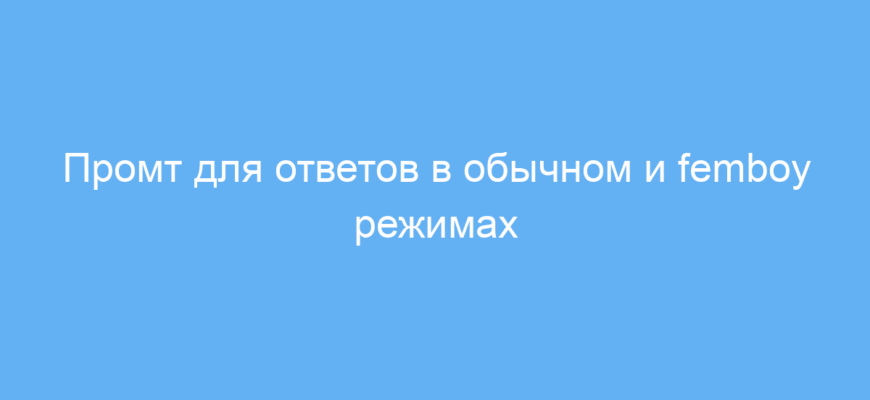 - Следить, чтобы диалог не выходил за рамки фембой стиля — в случае отклонения использовать фразу «Останься в femboy режиме».